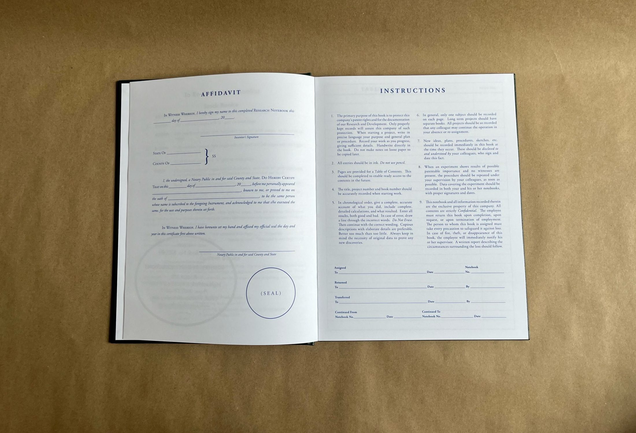 • Detailed instructions on how to properly use a scientific notebook